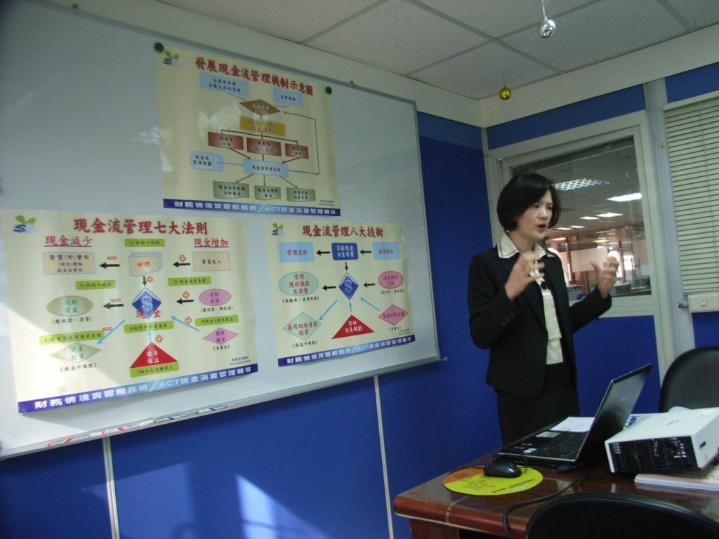 以財務平衡計分卡的精神,研發出現金流管理結合內控制度之服務,輔導多家中小企業提升財務管理功能;對外正式開辦財務會計稅務(ACT)教育訓練課程;擔任青創會、大專院校(中原、中央大學等)講師。
